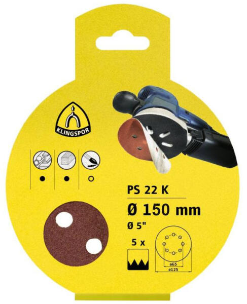 Klingspor PS 22 K excenter csiszolópapír tépőzáras GLS 51 P80 150mm (5db/csomag) (KL319070) - hardtools